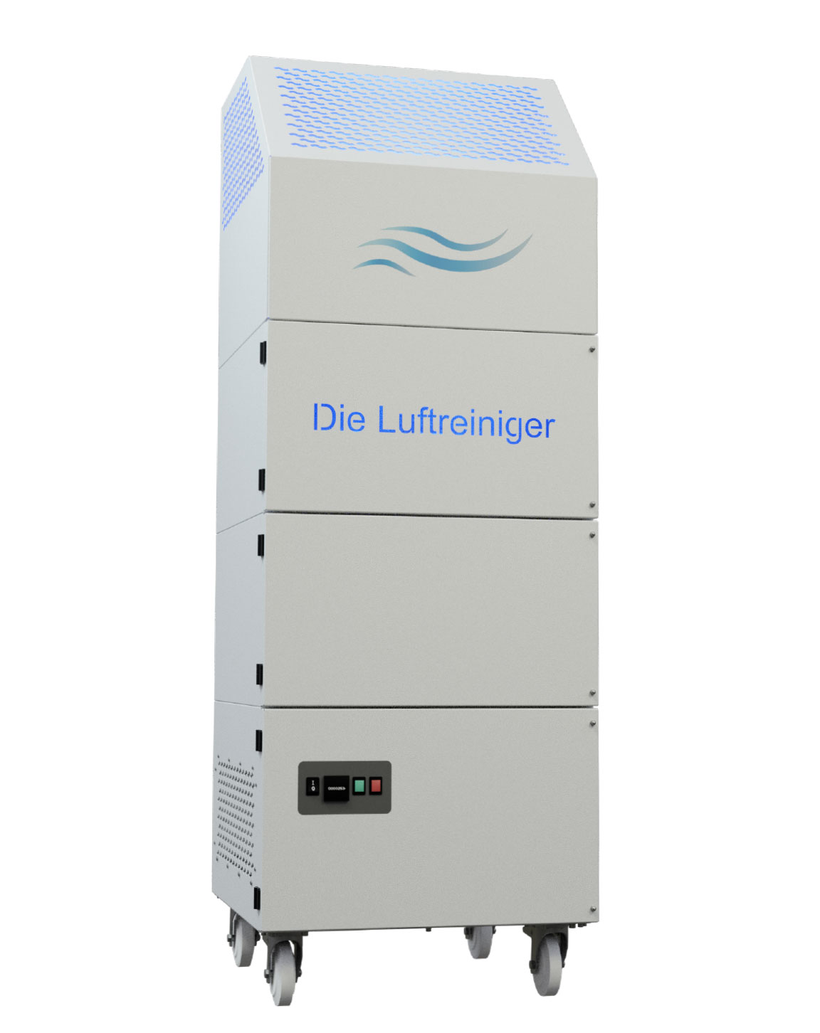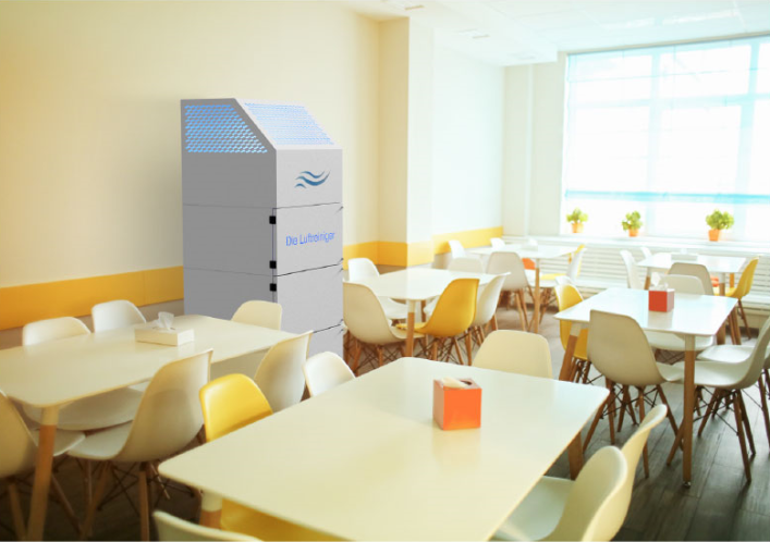 The air is drawn in at a height of almost 2 metres and then passed through a UV-C irradiation section.