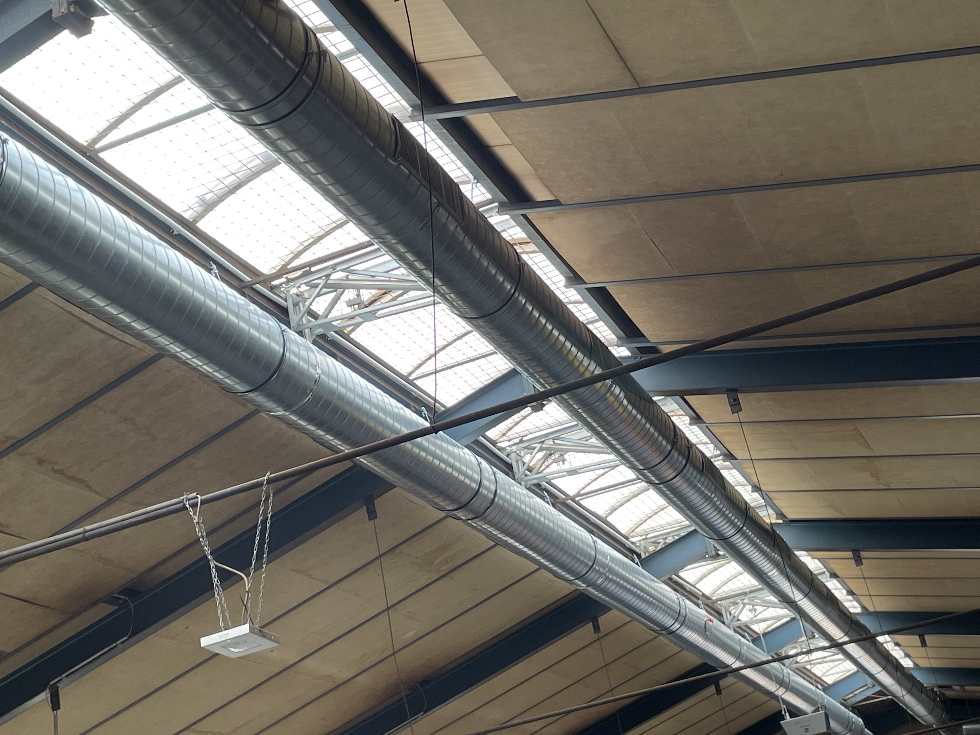 -Los tubos de aspiración se instalaron generosamente en toda la zona del techo. Con una tasa de cambio de aire tres veces superior, el volumen de aspiración llega a unos 24.000 m³/h.