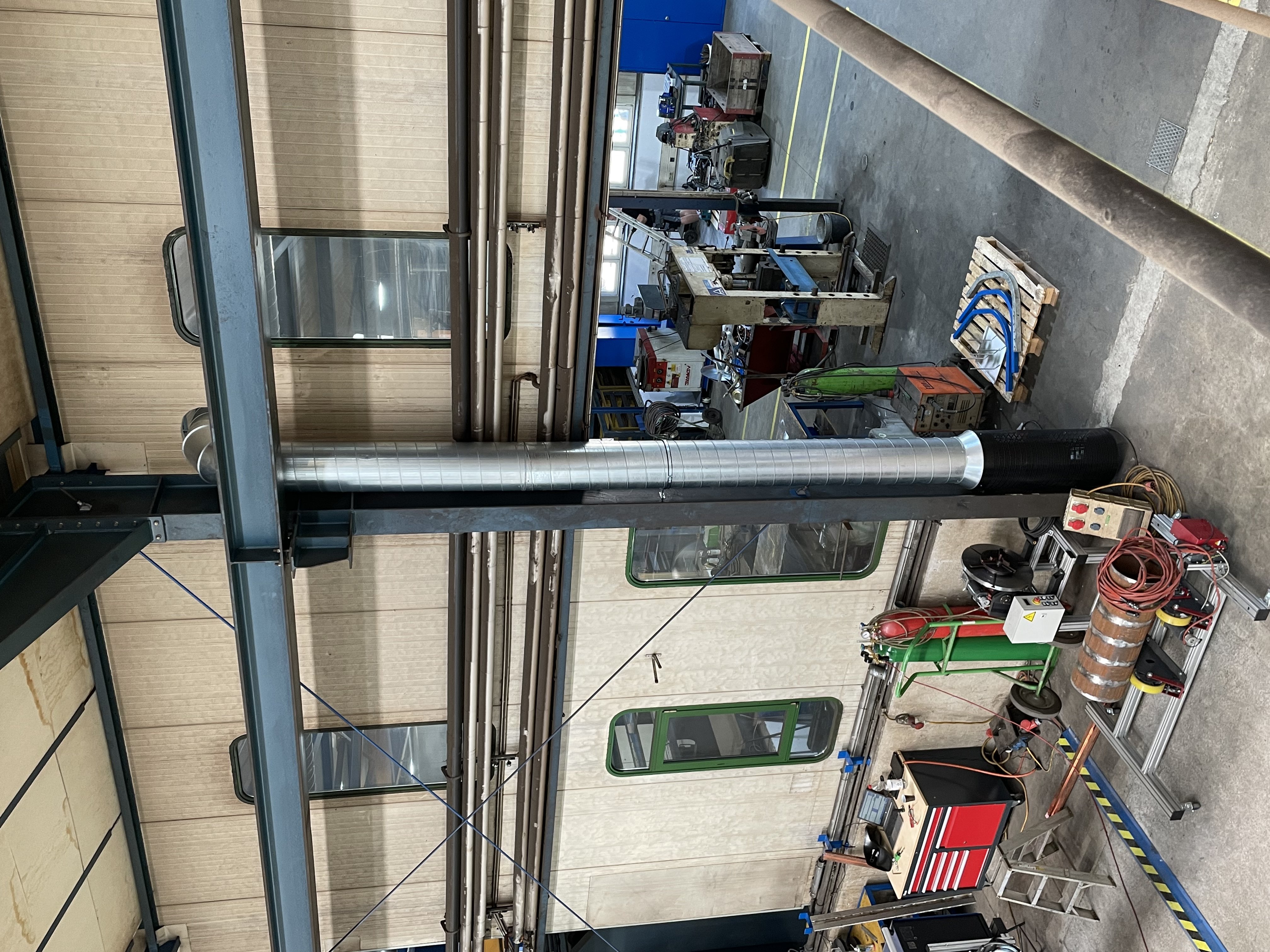 La producción de los grandes componentes de varios metales, planificados en la ingeniería profesional, tiene lugar en la nave de producción de 45 metros de largo, 20 metros de ancho y 9 metros de alto. Durante los procesos de soldadura y los trabajos de acabado en el esmerilado manual en 10 lugares de trabajo al mismo tiempo se produce una enorme cantidad de polvo y humo.