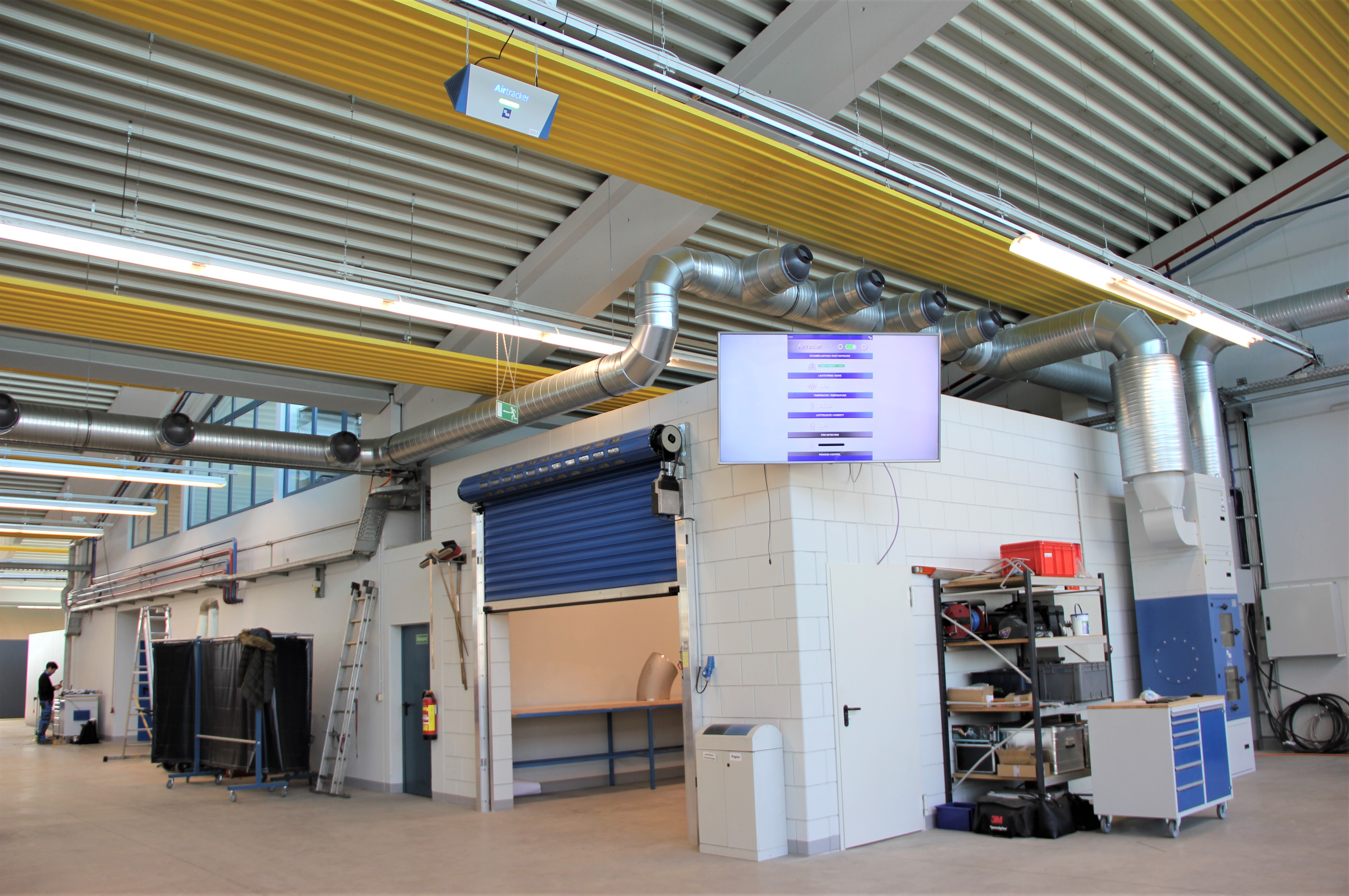 In puncto Gesundheitsschutz allein in „ein gutes Gefühl“ zu investieren reicht dem Spezialunternehmen Zahnen Technik jedoch nicht aus. So überwacht seit Inbetriebnahme der neuen Schweißerei der Airtracker von TEKA die Raumluftqualität und signalisiert per Ampellicht, wie es um die Belastung der Raumluft in der Halle bzw. im Arbeitsraum steht. Bedarfsgerecht kann das innovative Raumluftmonitoring-System die Anlage ansteuern und hochfahren.
