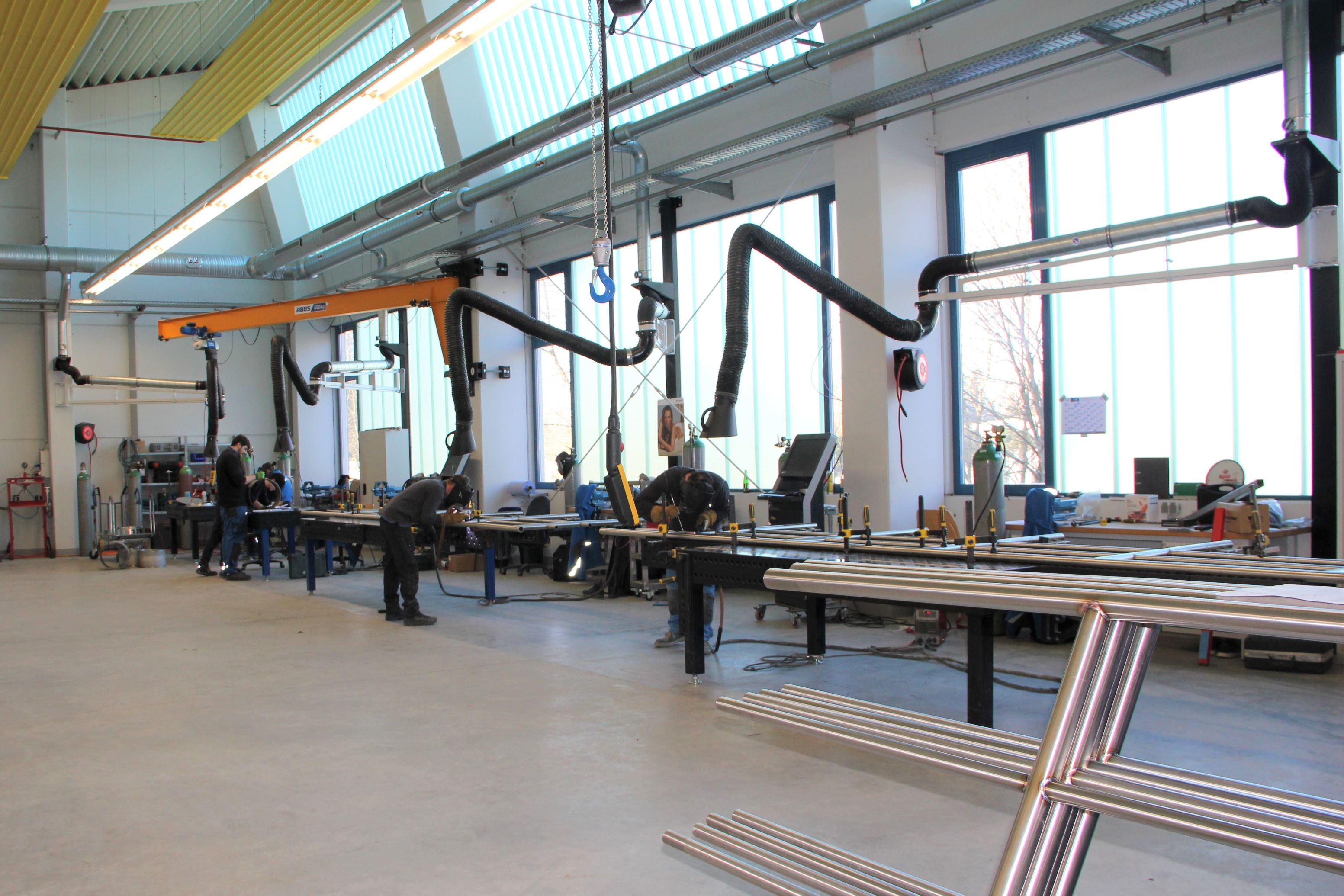 In einem ersten Beratungsgespräch vor Ort wurde die Bedarfssituation exakt ermittelt, um eine bestmögliche Lösung zu erarbeiten. So sollte ein optimales Absaugsystem für fünf neue Schweißarbeitsplätze konzipiert werden, das eine gleichzeitige punktuelle Absaugung ermöglicht. Zugleich galt es, eine hohe Qualität der Raumluft sicherzustellen, so dass in der rund 500 qm großen Halle zu jederzeit für die Mitarbeiter gesundheitlich unbedenkliches Arbeiten möglich ist.