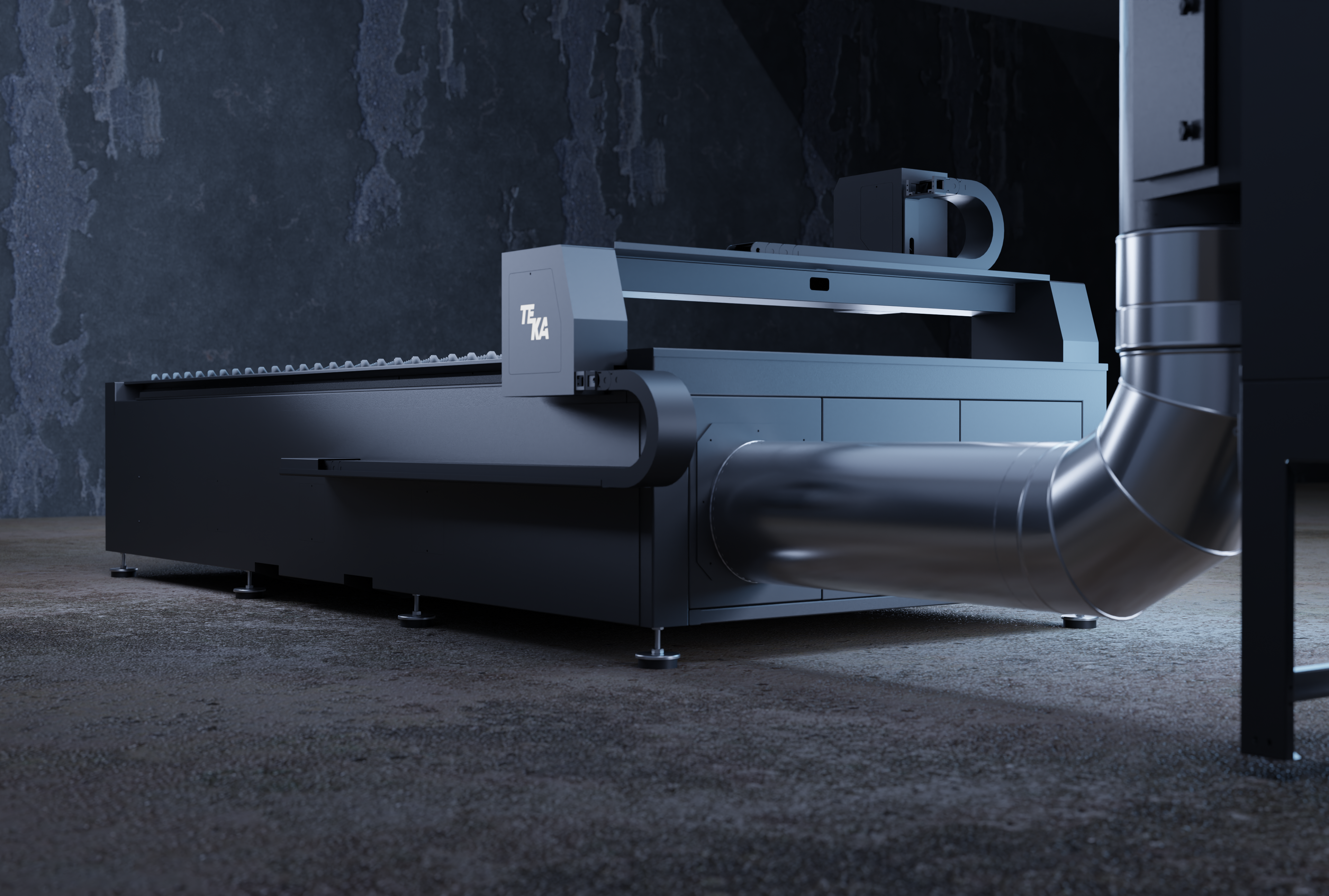 Um eine saubere Arbeitsumgebung zu gewährleisten, hat TEKA den automatischen Absaugtisch mit einer Sektionssteuerung versehen. Eine integrierte Schnittstelle erlaubt den Fernstart und die Stromversorgung der Filteranlage. Bei der AirCut Serie haben sich die Entwickler für die bewährte und W3-zertifizierte EcoCube Filteranlage entschieden, einen der Bestseller im TEKA Portfolio. Auch die EcoCube Filteranlagen folgen dem Plug&Play-Prinzip. Vor Ort sind sie in weniger als einer halben Stunde montiert und betriebsbereit. In der AirCut Serie kommen die EcoCube Filteranlagen in zwei Leistungsstufen zum Einsatz: als EcoCube 5,5 kW (Mittelformat) und als EcoCube 7,5 kW (Großformat). Dank eines Frequenzumrichters arbeiten alle EcoCube Filteranlagen besonders effizient – sie passen die erforderliche Saugleistung während des Schneidprozesses aktiv an.