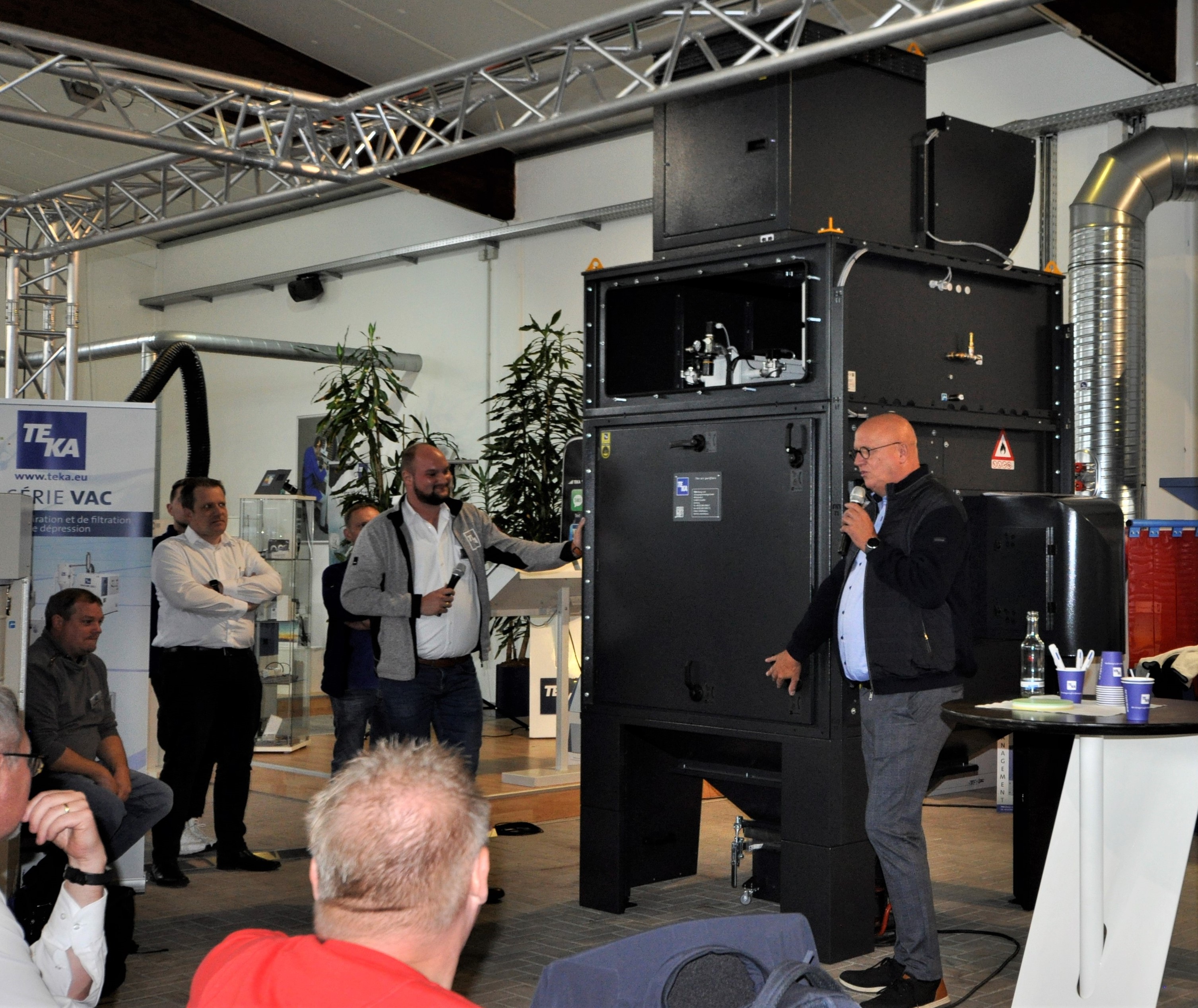 Wesentlich ging es an den zwei Tagen auch um die zahlreichen Innovationen, die der Absauganlagenhersteller in den vergangenen Monaten zur Marktreife geführt hat - wie die neue Absauganlage AirCube, die Absaugtechnik und Vernetzung im Industrie 4.0-Stil auf höchstem Niveau vereint. „Das ist die effizienteste, intelligenteste und nachhaltigste Anlage, die TEKA jemals gebaut hat”, erklärte TEKA-Geschäftsführer Erwin Telöken bei der Präsentation. Für die sichere Abscheidung explosionsgefährdeter Medien steht als neueste Produktentwicklung die ExCube bereit. Simon Telöken: „Mit dieser kompakten Sonderanlage schließen wir definitiv eine Lücke im Sortiment.”